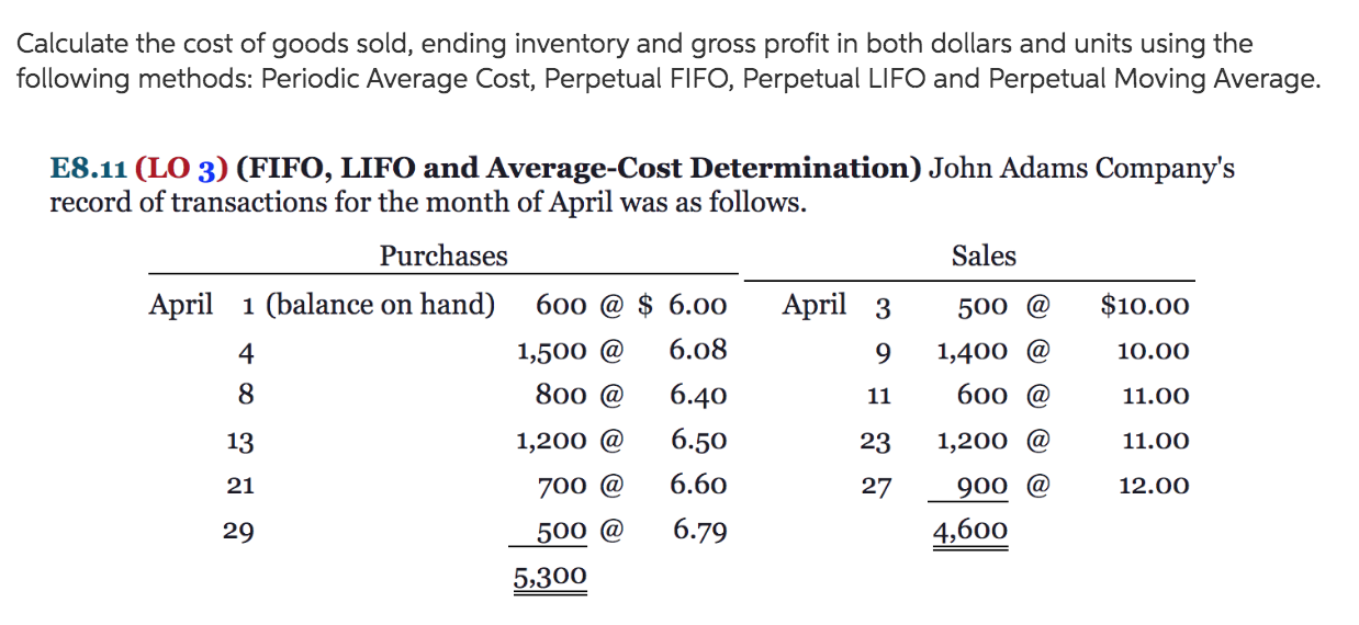 Solved Calculate The Cost Of Goods Sold Ending Inventory Chegg Com